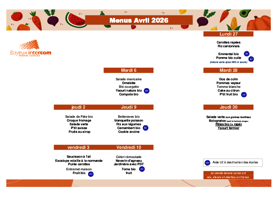 Menus de avril 2026